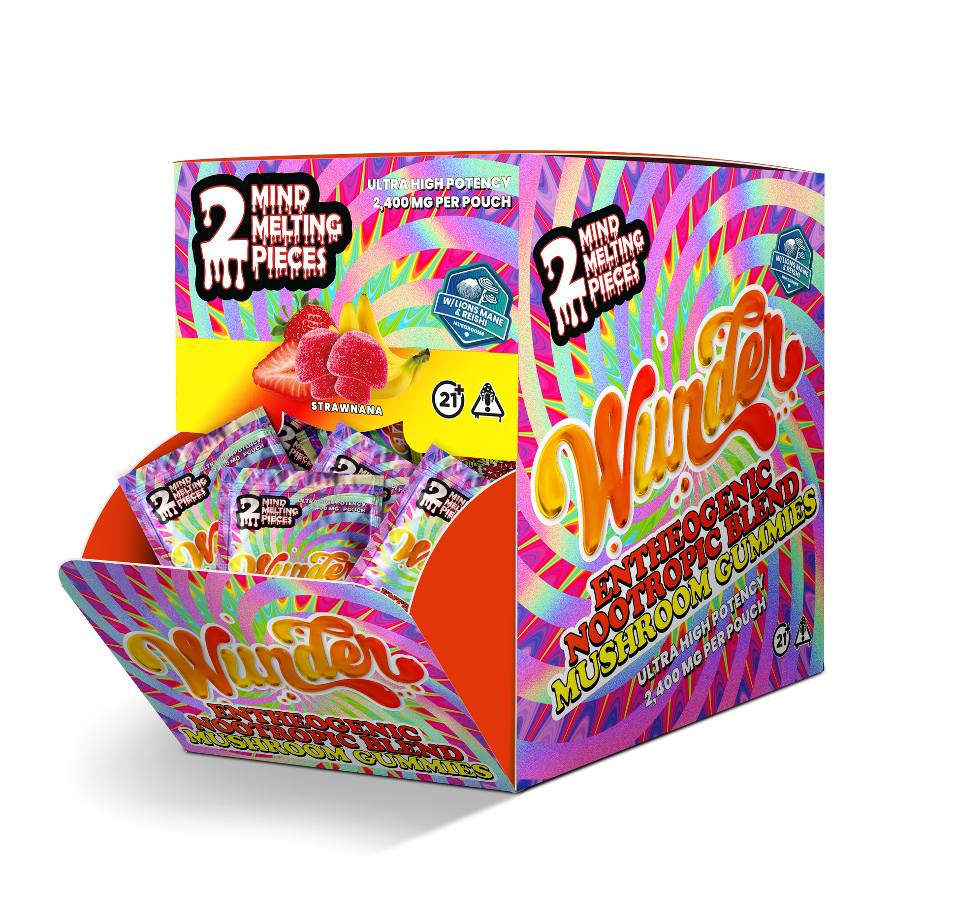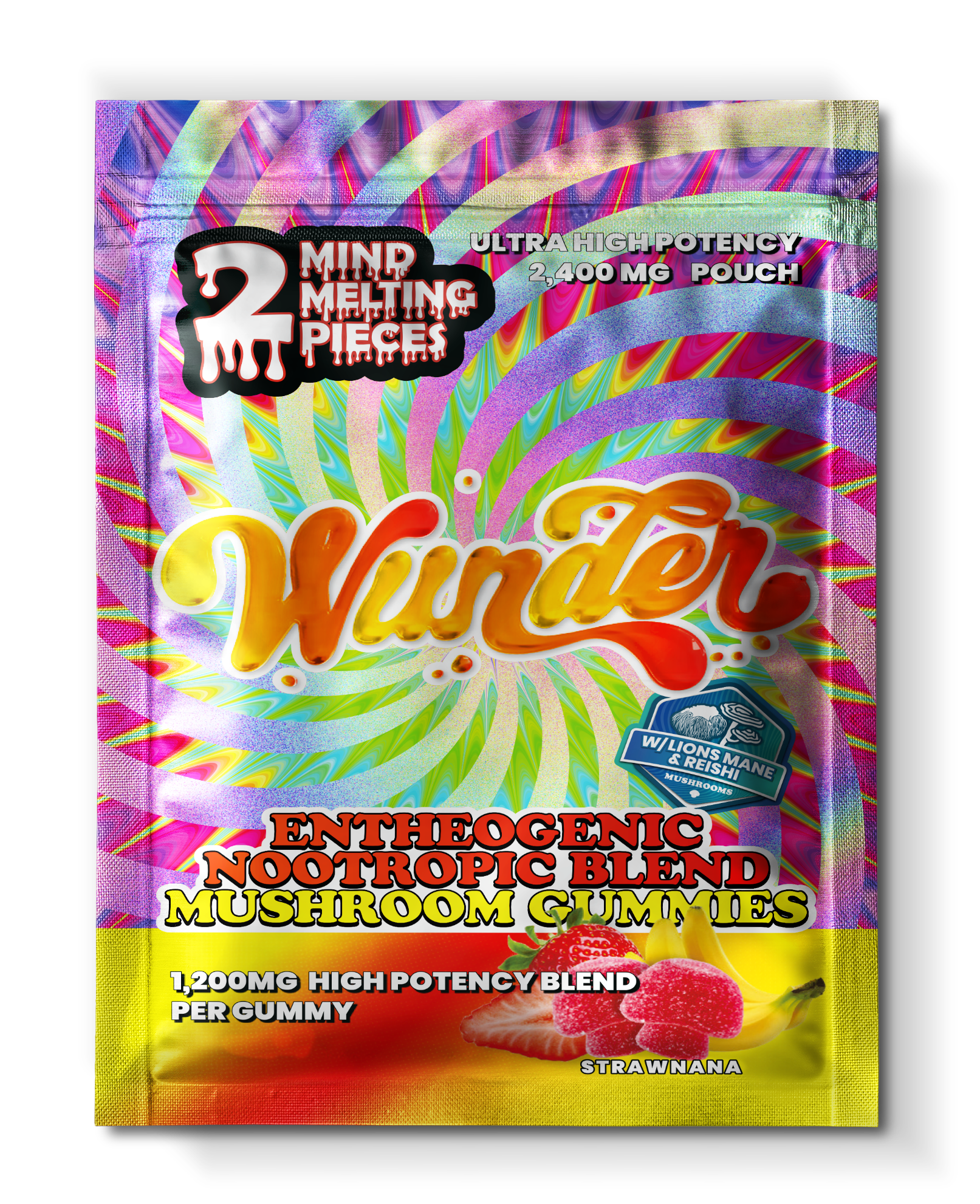 Potent. Compact. Flavorful. These Wunder High Mushroom Blend Gummies pack a powerful 1,200 mg entheogenic blend per pouch into a convenient 2-piece format.