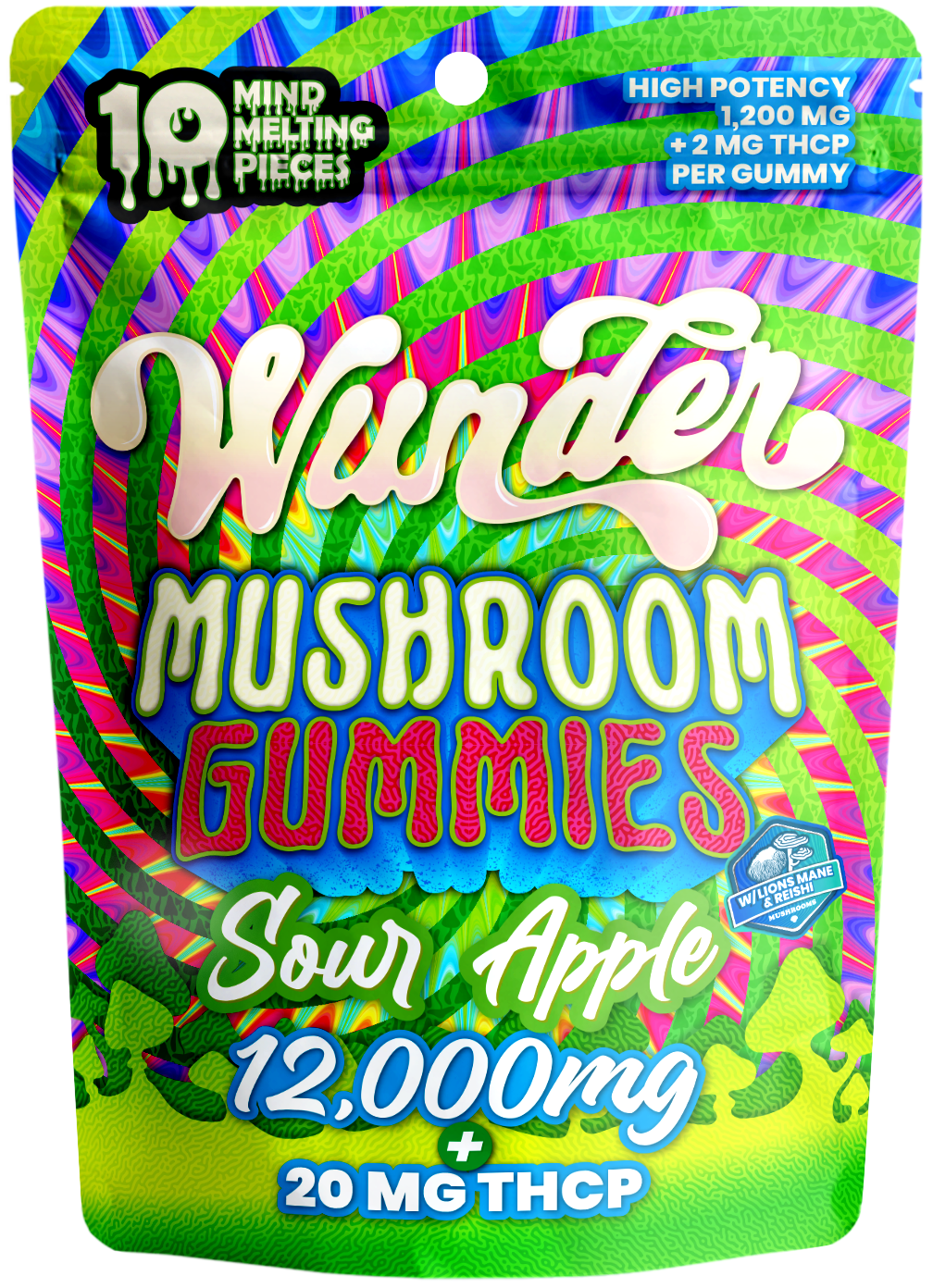 Wunder High Potency Mushroom Gummies — Sour Apple (12,000 mg blend)